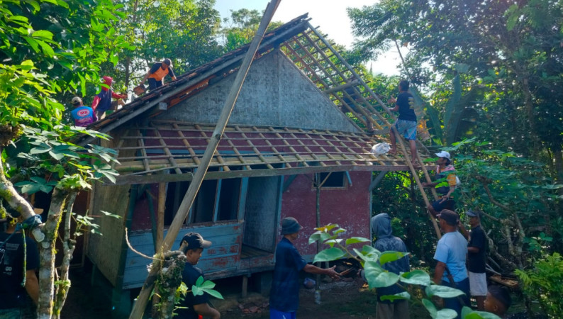 Kegiatan ini dipimpin langsung oleh Kepala Dusun Tugu, Yogi. Dengan membawa peralatan sederhana seperti palu, linggis, dan gergaji, warga secara sukarela bergotong royong membongkar bagian demi bagian rumah yang kondisinya sudah tidak layak huni.