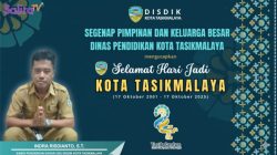 Atas nama Pimpinan dan seluruh keluarga besar Dinas Pendidikan Kota Tasikmalaya, beliau turut mengungkapkan rasa bangga atas perjalanan panjang yang telah dilalui oleh Kota Tasikmalaya sejak resmi berdiri pada 17 Oktober 2001.