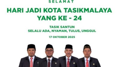 “Selamat Hari Jadi ke-24 untuk Kota Tasikmalaya tercinta. Semoga semangat Tasik SantunSelalu Ada, Nyaman, Tulus, dan Unggul — terus menjadi pedoman dalam membangun kehidupan masyarakat yang harmonis, maju, dan berkarakter,” ujar Drs. Ade Hendar dengan penuh optimisme.