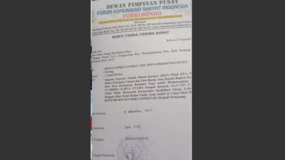 Pelaporan ini dilakukan langsung oleh Ketua Umum DPP Forkorindo, Tohom TPS, SE., SH., MM., yang turut didampingi Ketua DPD Forkorindo Kepri, Pardamean Simangunsong. Laporan tersebut teregistrasi dengan nomor 801/XXVII/BKS/LAPORAN-TDP/DPP-FORKORINDO/XI/2025.