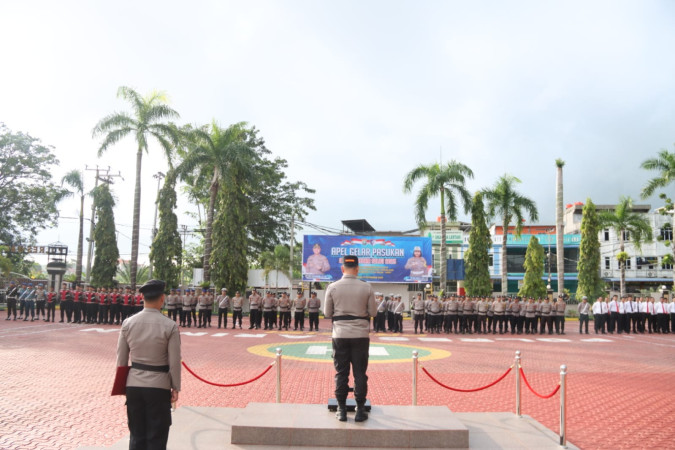 Apel tersebut melibatkan jajaran Kabag, Kasat, Kasi, Pama, personel Satsamapta, Satpolairud, Satlantas, staf Polres, Polsek jajaran, unsur TNI, Dinas Perhubungan, PNS, serta berbagai elemen pendukung lainnya.