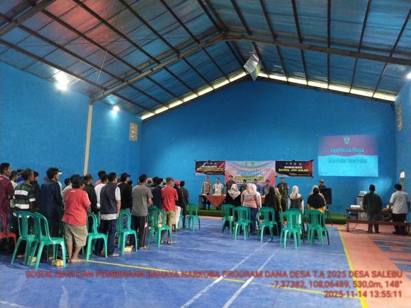 Kegiatan sosialisasi yang diselenggarakan pada Sabtu, 14 November 2025, berlokasi di GOR Desa Salebu, Kampung Cimindi RT 08/RW 01, Kecamatan Mangunreja, Kabupaten Tasikmalaya. Acara ini merupakan bagian dari pemanfaatan Program Dana Desa Tahun Anggaran 2025 yang diarahkan untuk memperkuat perlindungan masyarakat dari berbagai bentuk ancaman sosial dan adiktif.