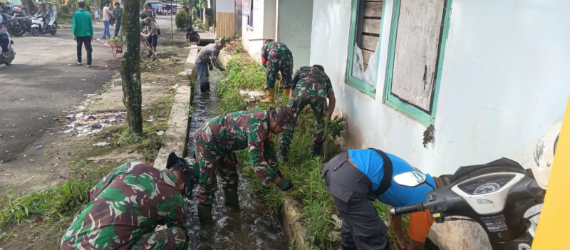 Usai apel, personel Koramil 1211/Singaparna bersama Kapten Mukhlis langsung terjun membersihkan parit yang tersumbat di sekitar sekolah. Air yang keruh dan penuh sedimen tidak menyurutkan langkah mereka. Para prajurit mengangkat tumpukan lumpur, membersihkan sampah plastik, serta memotong rerumputan liar yang menutupi area sekolah.