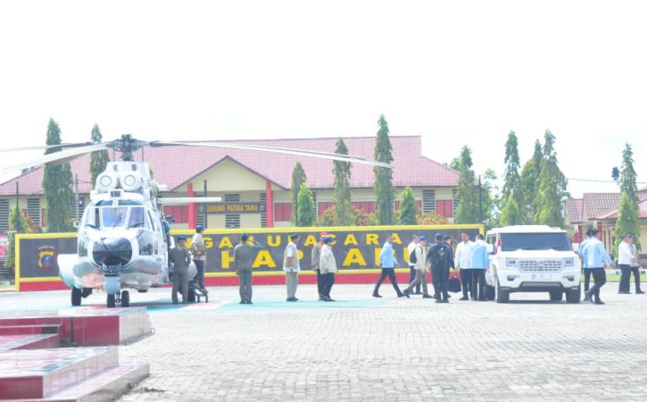 Sekitar pukul 11.05 WIB, Presiden RI beserta rombongan tiba di lapangan pendaratan SPN Hinai Polda Sumatera Utara menggunakan tiga unit helikopter Caracal. Satu unit helikopter digunakan oleh Presiden RI, sementara dua unit lainnya membawa rombongan pendamping.