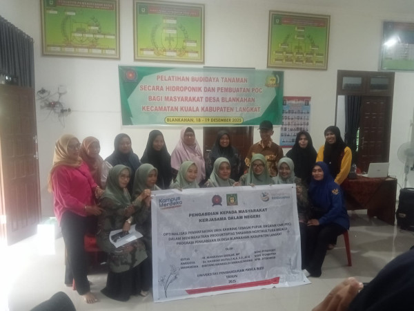 SALIRA TV | KAB. LANGKAT – Upaya peningkatan kapasitas masyarakat di sektor pertanian terus dilakukan di Desa Blankahan, Kecamatan Kuala, Kabupaten Langkat. Pada tanggal 18 hingga 19 Desember 2025, desa tersebut menggelar pelatihan budidaya tanaman hidroponik serta pembuatan Pupuk Organik Cair (POC) sebagai langkah penguatan pertanian modern dan berkelanjutan.