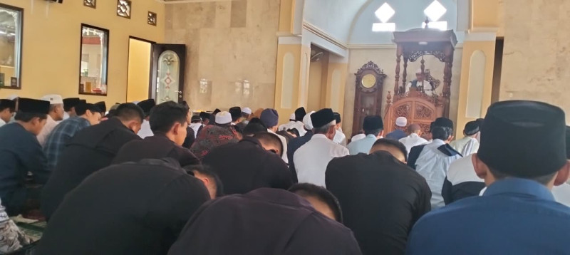 Kebersamaan antara aparat kepolisian, ulama, santri, dan pengusaha tampak terjalin tanpa sekat. Mereka duduk bersanding dalam suasana khusyuk, menunaikan salat Jumat serta doa bersama, mencerminkan harmoni sosial yang menyejukkan.