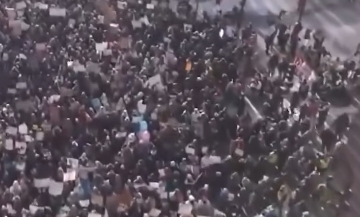 Para demonstran menuntut perubahan kebijakan serta menyerukan perlindungan terhadap demokrasi dan konstitusi Amerika Serikat.